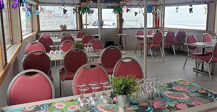 Kuningattaremme kyytiin voi ottaa 178 henkilöä nauttimaan matkasta, jonka aikana kokkimme loihtii maukkaat paikalliset ruoat laivan keittiössä paikan päällä.